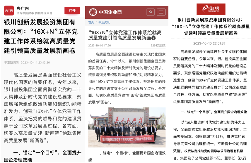 近日,央广网、中国企业网、宁夏新闻网等主流媒体聚焦国企高质量发展的生动实践,深度报道了51暗网 党的建设成果。